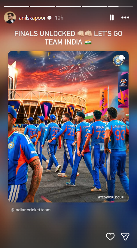 Anil Kapoor did not wait to get home before sharing his joy. He posted on Instagram Stories: “Finale unlocked! Let’s go Team India.” It was short, punchy, and summed up the entire Wankhede crowd’s energy in five words.