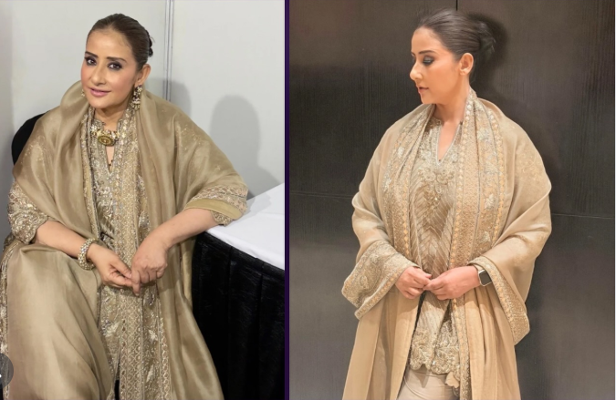 Manisha wore a three-piece ethnic co-ord set crafted in muted beige Chanderi silk, a fabric known for its light feel and soft shine. The colour choice itself stood out by being understated, a refreshing break from the heavy embellishments and bold shades often seen at high-profile fashion events.