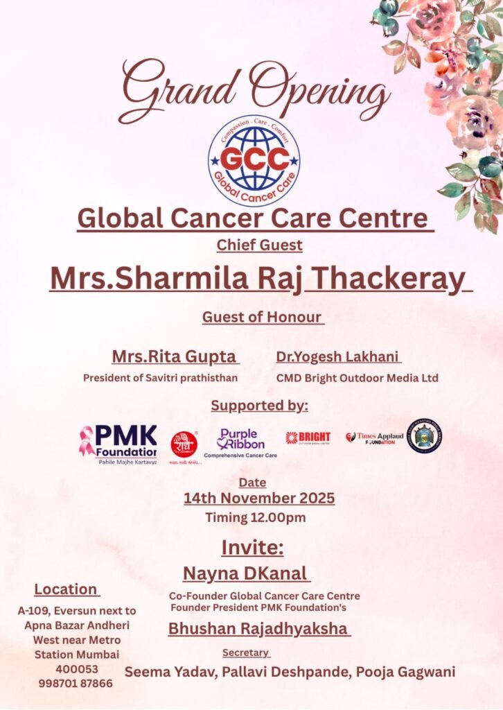 In a heartfelt step towards strengthening the fight against cancer, PMK Foundation, in collaboration with Times Applaud Foundation, proudly announces the Grand Launch of the Global Cancer Care Centre on 14th November 2025 at Andheri West, next to Apna Bazar (near Metro Station).