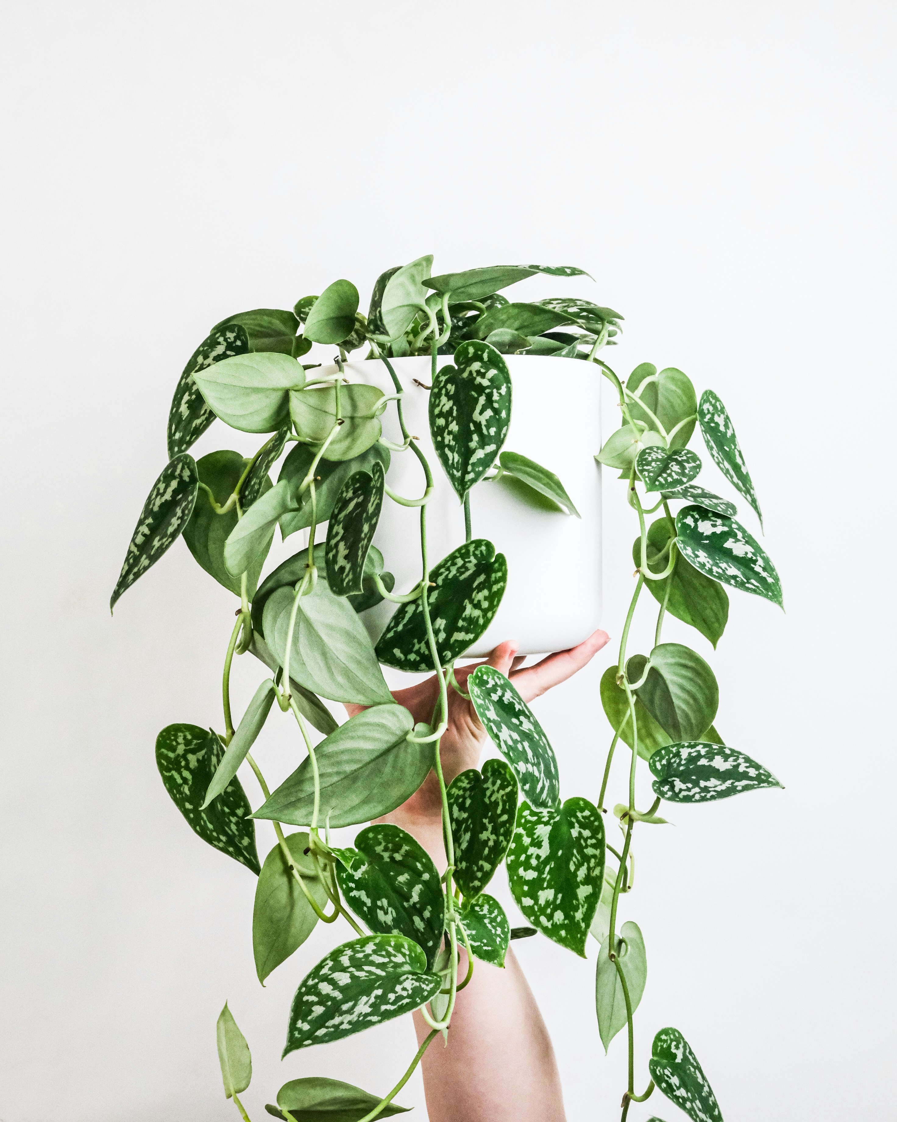 Pothos is a hardy and adaptable plant that can grow in both water and soil. It features trailing vines with heart-shaped leaves.